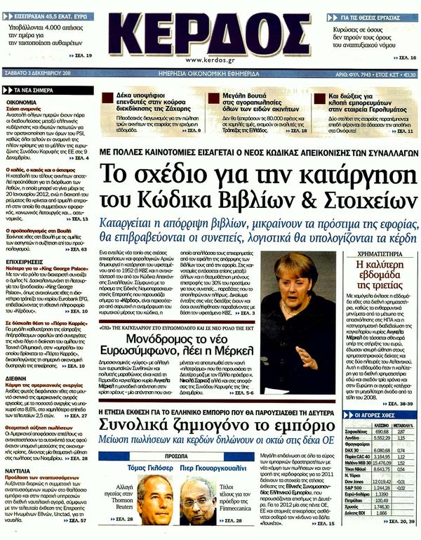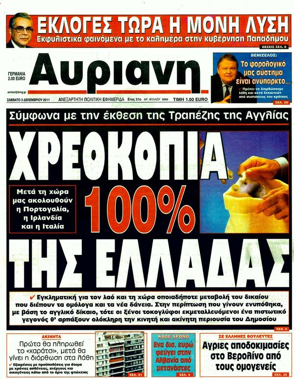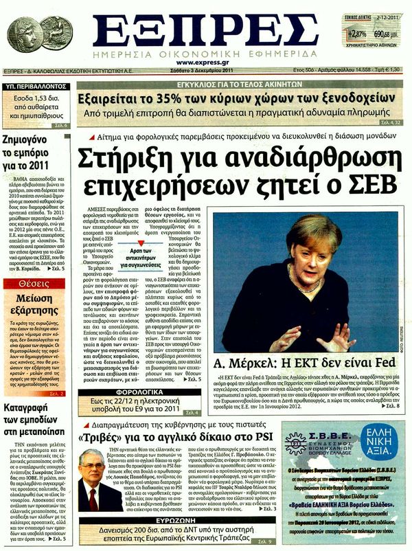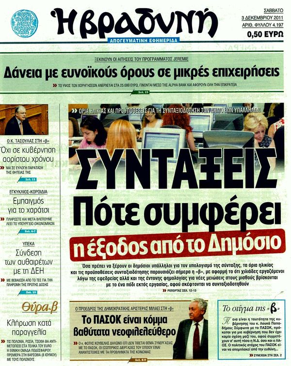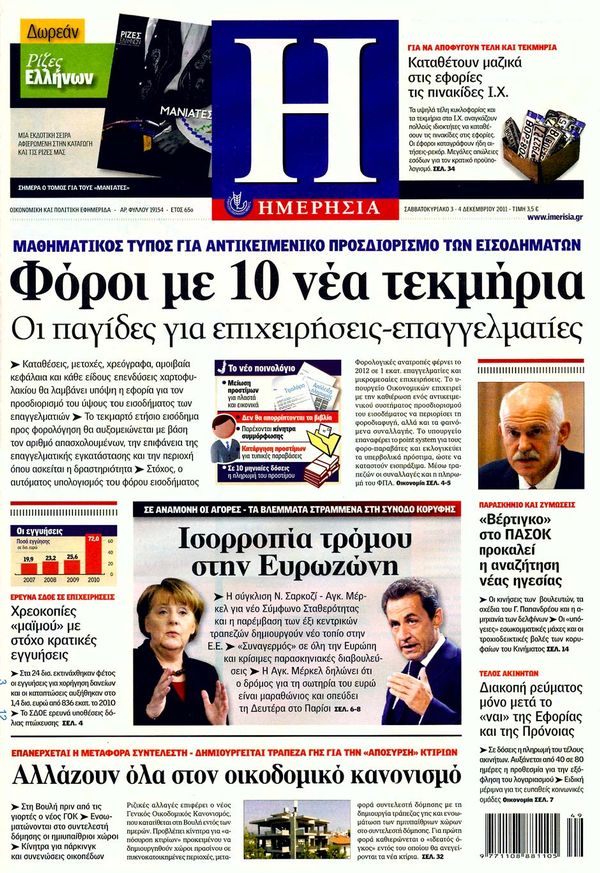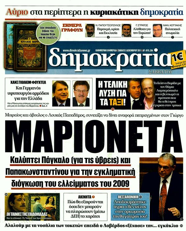 Πολιτικές & Αθλητικές εφημερίδες 3-12-2011