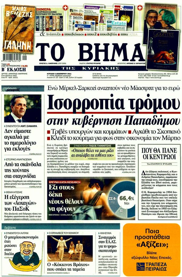 Κυριακάτικα Πρωτοσέλιδα 3-12-2011