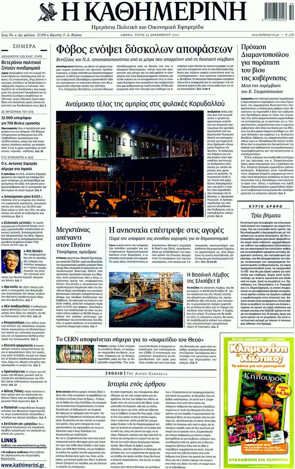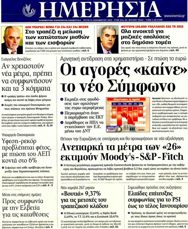 Πολιτικές & Αθλητικές εφημερίδες 13-12-2011