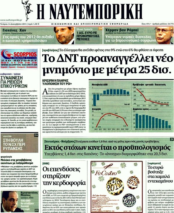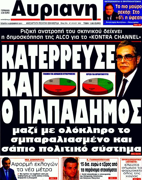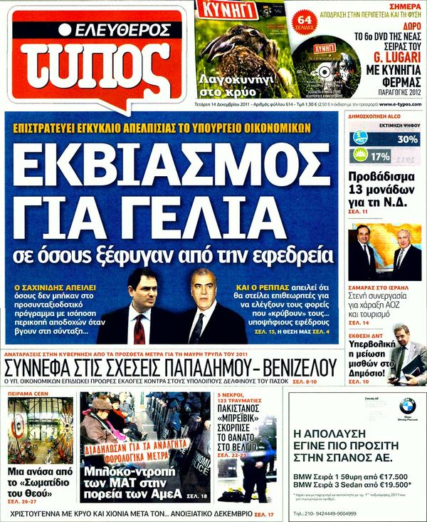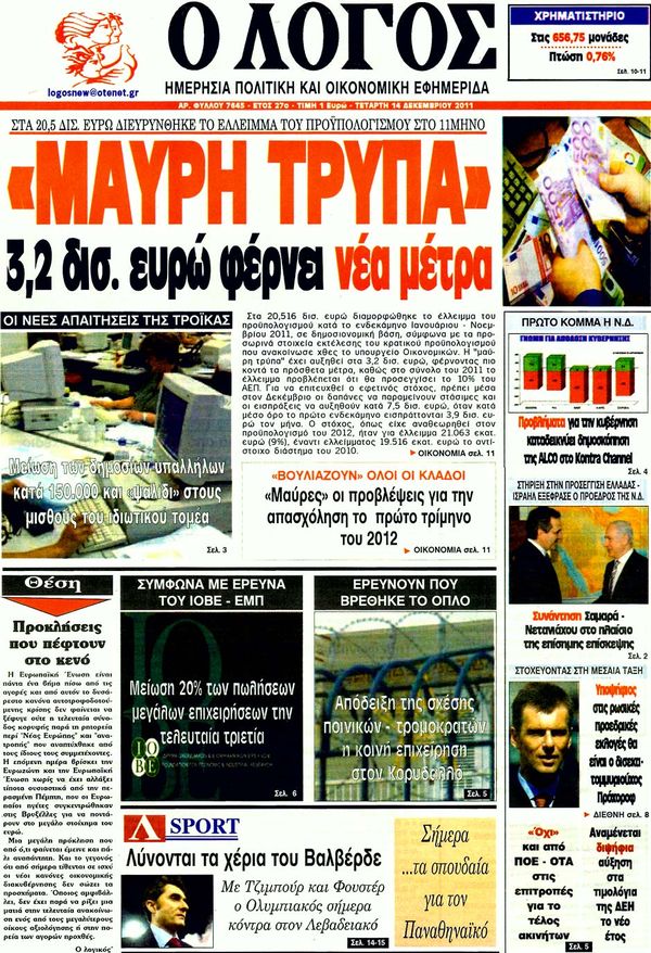 Πολιτικές & Αθλητικές εφημερίδες 14-12-2011