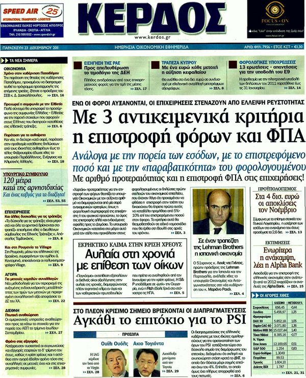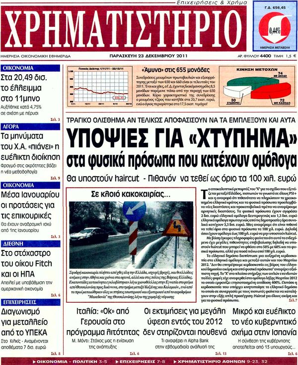 Πολιτικές & Αθλητικές εφημερίδες 23-12-2011