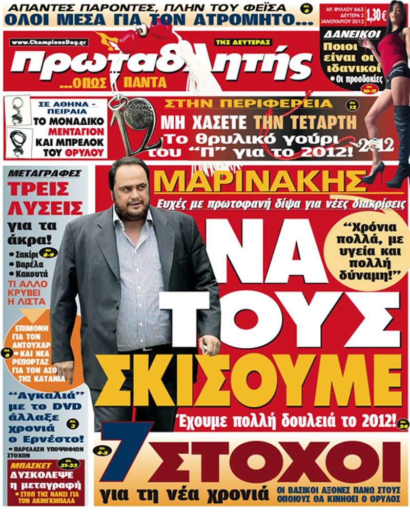 Πολιτικές και αθλητικές εφημερίδες 2-1-2012
