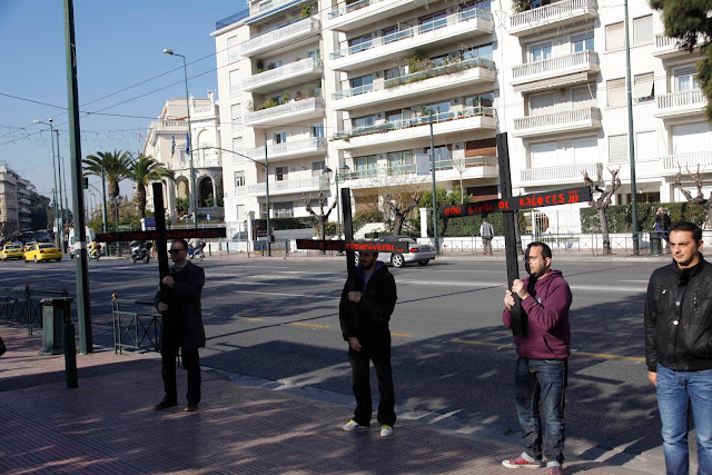 Αυτό τον τρόπο επέλεξαν φοιτητές και σπουδαστές, για την υποδοχή τους στην υπουργό, εμπνευσμένοι... από την έκθεση στο Βυζαντινό Μουσείο. Μόλις έφτασε με την υπουργική Mercedes, οι «σταυροφόροι» της έκλεισαν τον δρόμο. Φοιτητές κρατούσαν μαύρους σταυρούς...