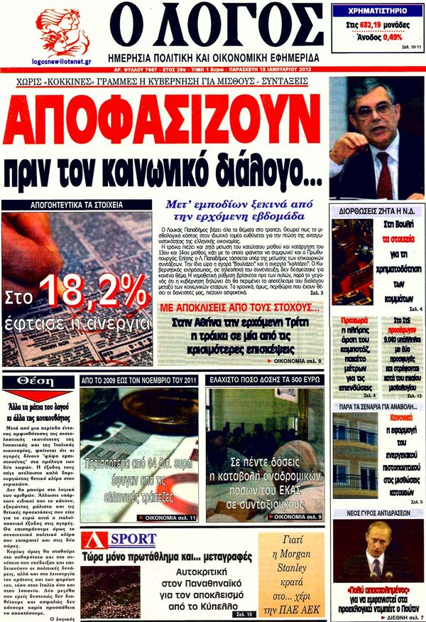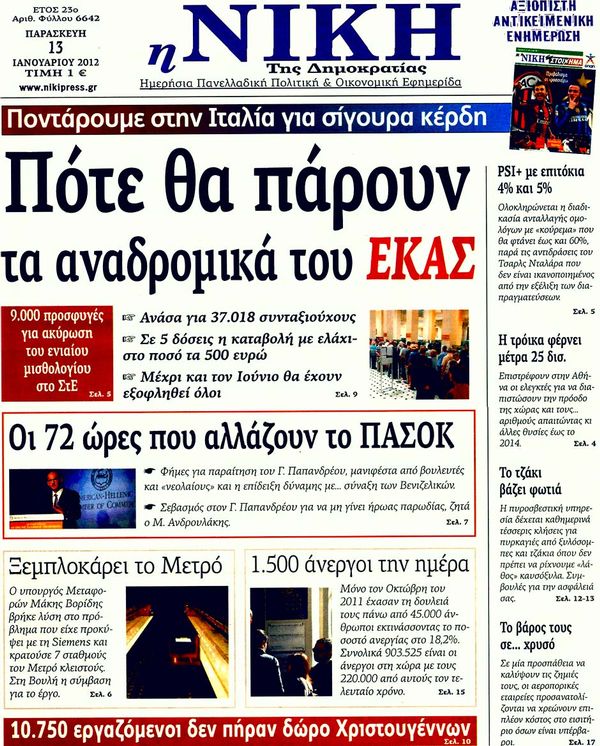 Πολιτιές & Αθλητικές εφημερίδες 13-1-2011