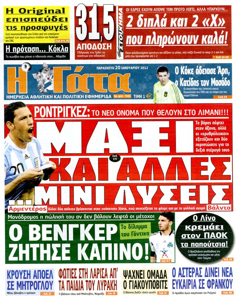 Πολιτιές & Αθλητικές εφημερίδες 20-1-2011
