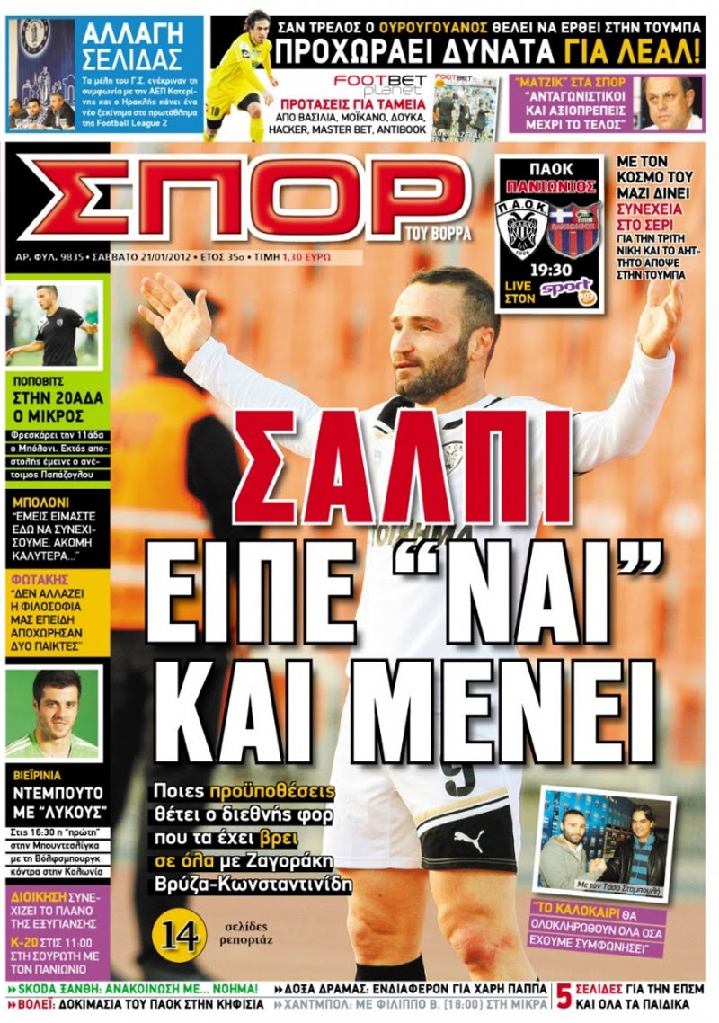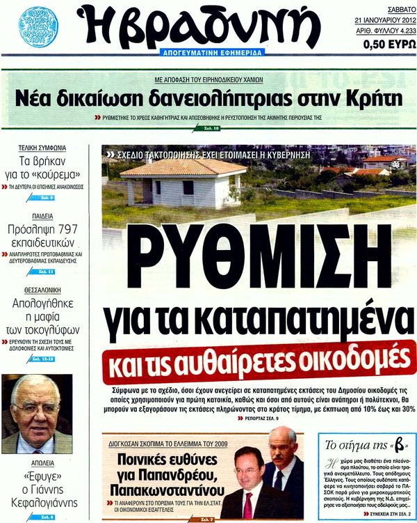 Πολιτιές & Αθλητικές εφημερίδες 21-1-2011