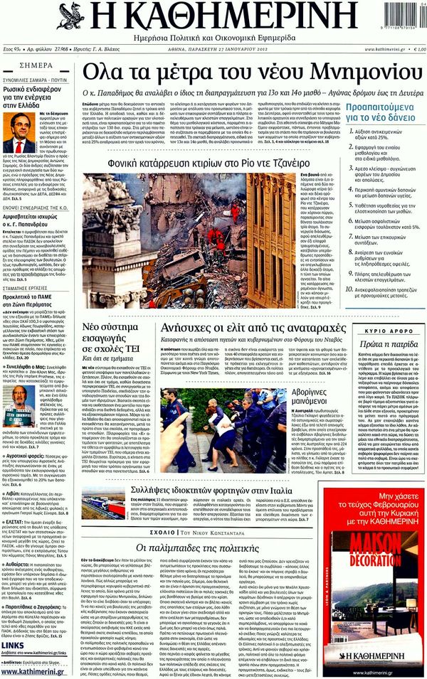 Πολιτικές & Αθλητικές εφημερίδες 27-1-2011