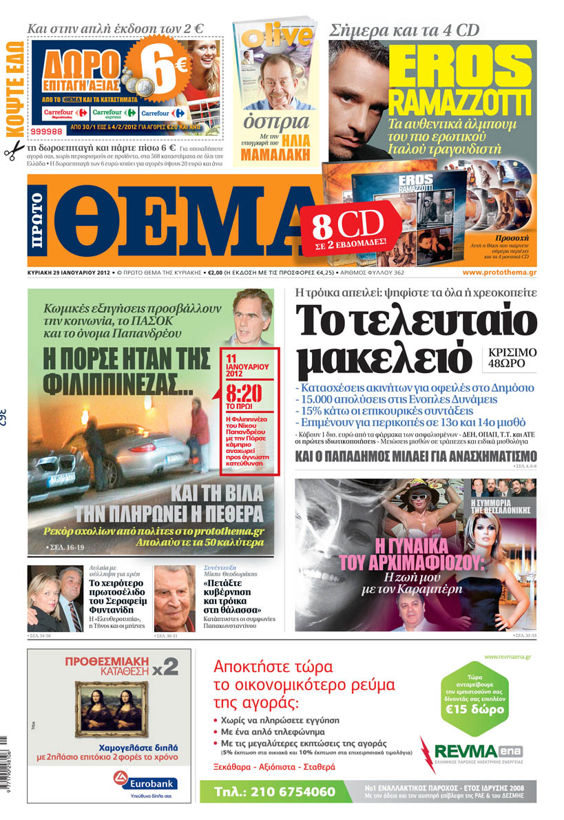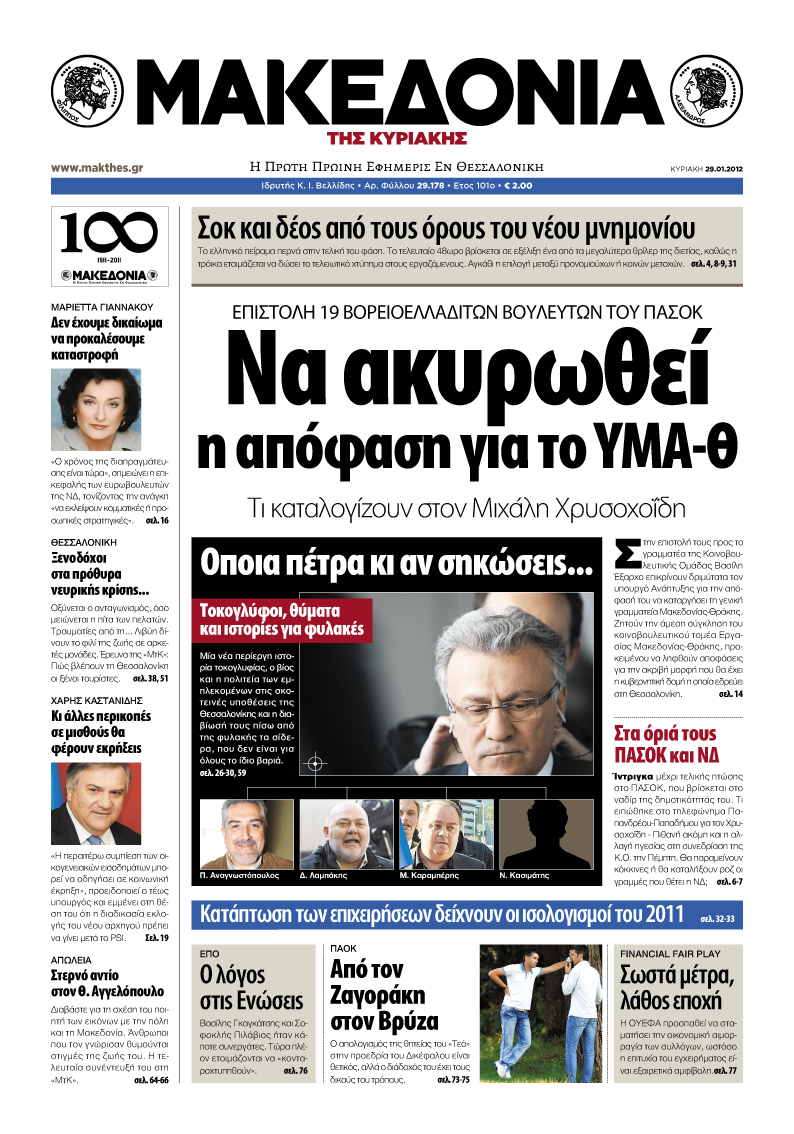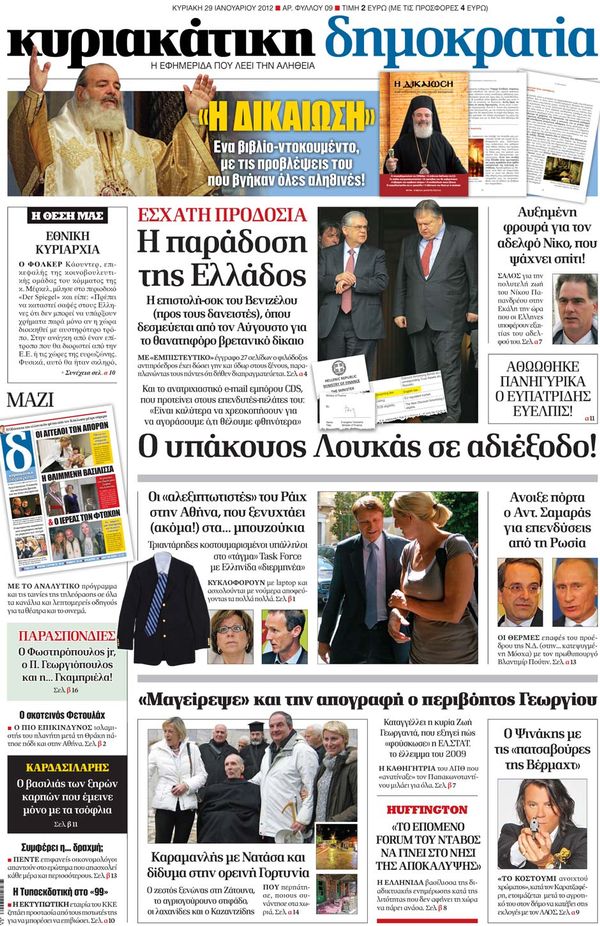 Κυριακάτικα Πρωτοσέλιδα 29-1-2012