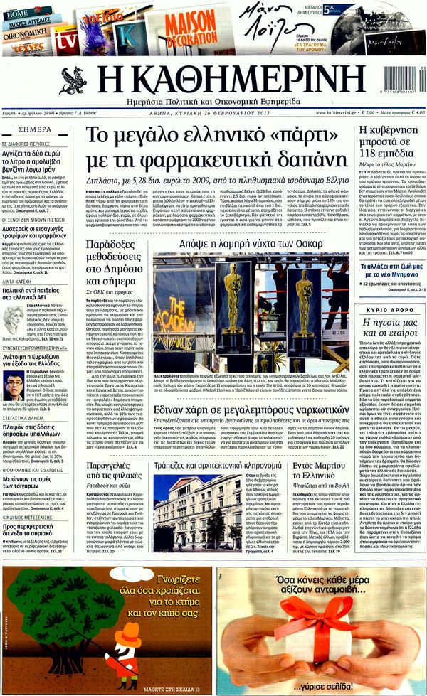Κυριακάτικα Πρωτοσέλιδα 26-2-2012