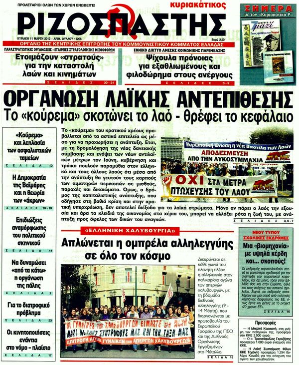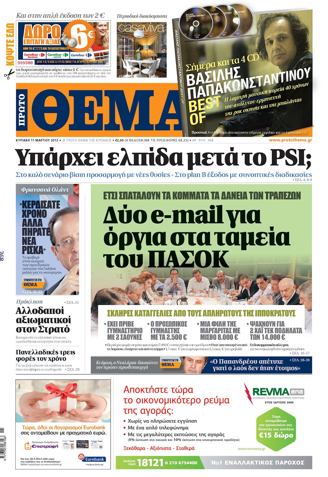Κυριακάτικα Πρωτοσέλιδα 11 -3-2012