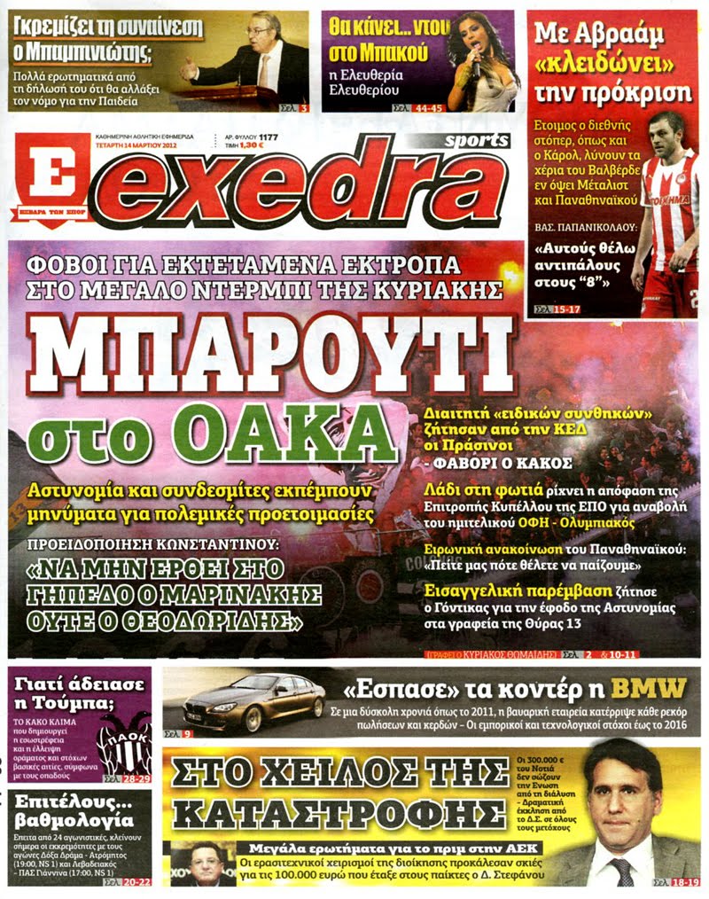 Πολιτικές & Αθλητικές εφημερίδες 14-3-2011