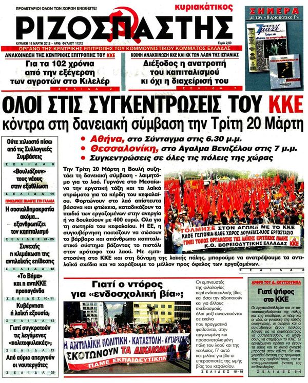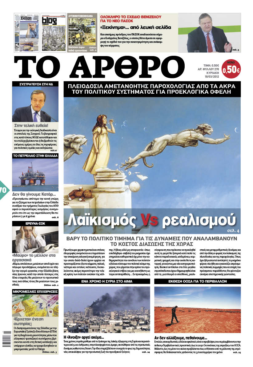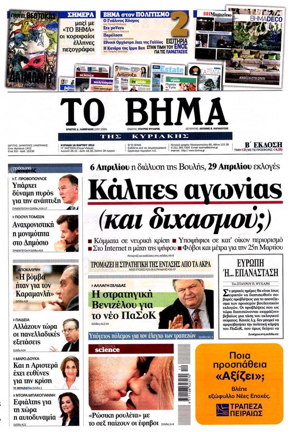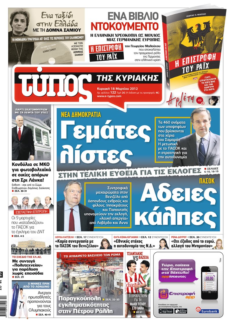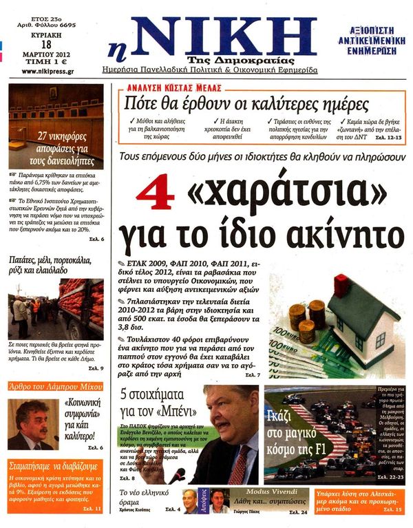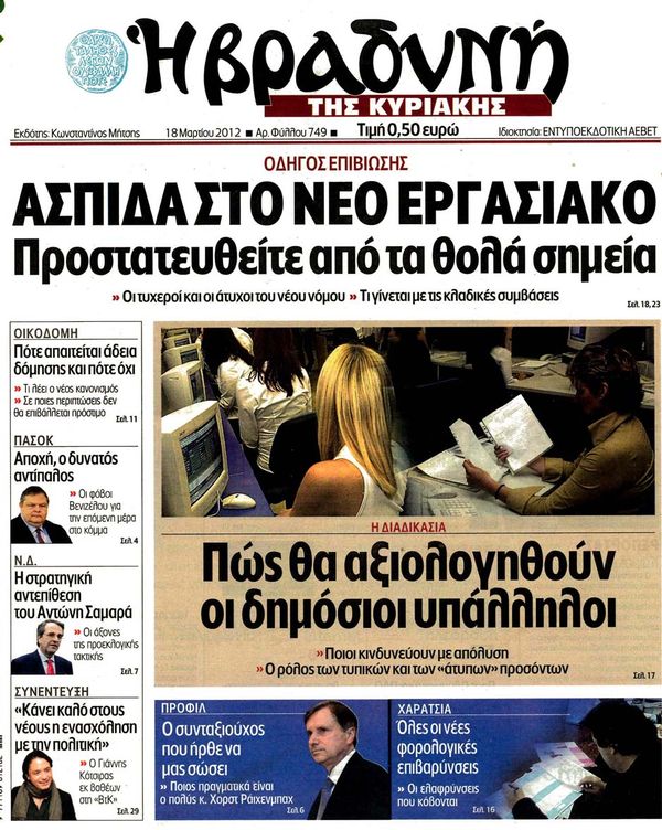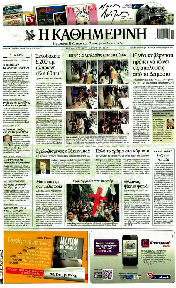 Κυριακάτικα Πρωτοσέλιδα 18 -3-2012