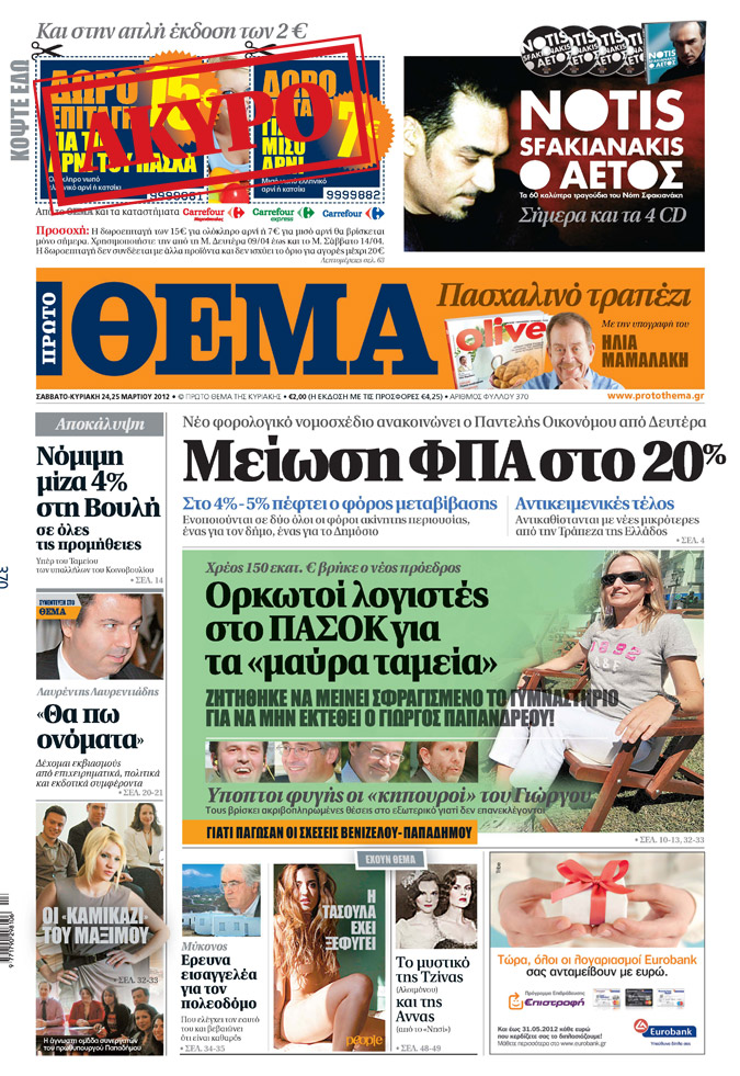 Κυριακάτικα Πρωτοσέλιδα 25 -3-2012