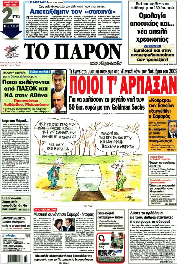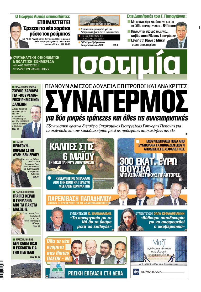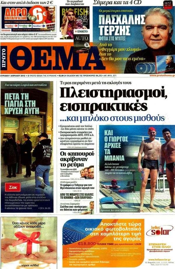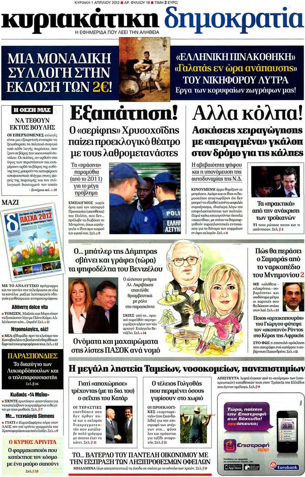 Κυριακάτικα Πρωτοσέλιδα 1-4-2012