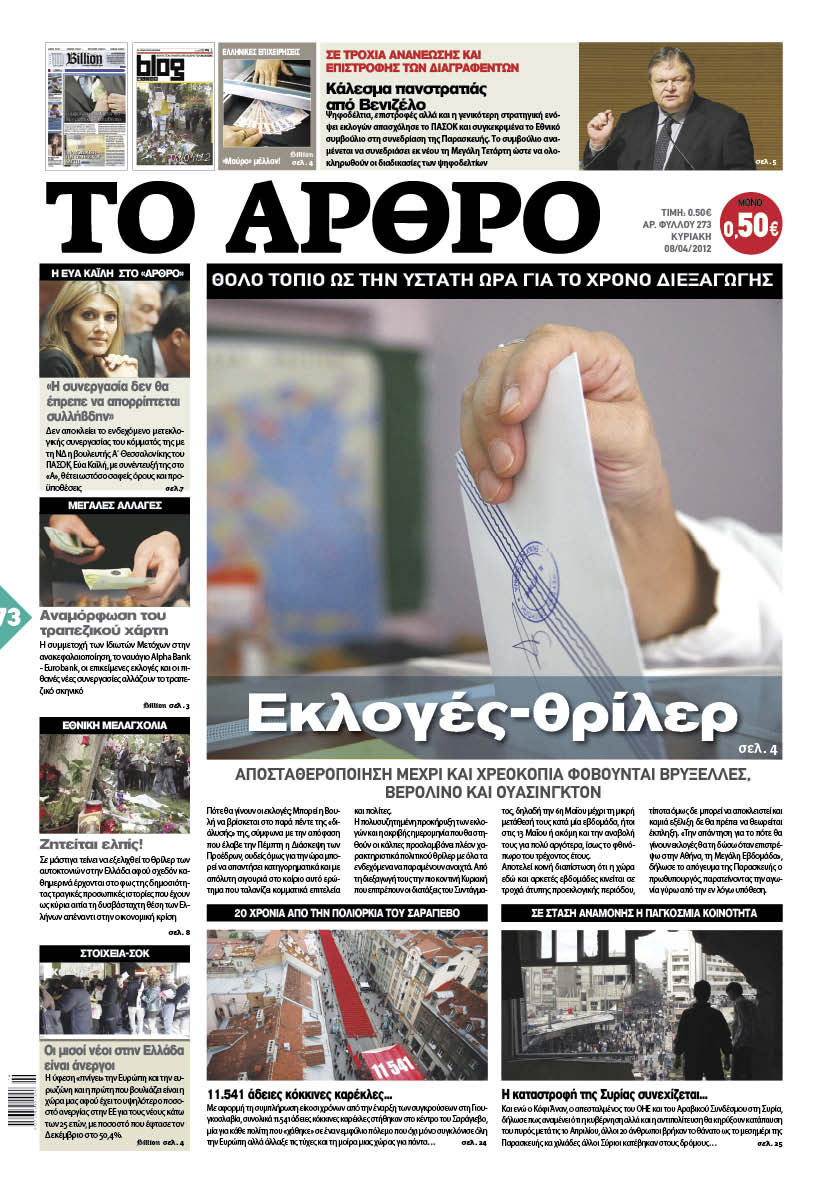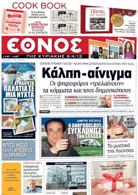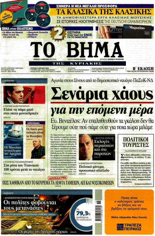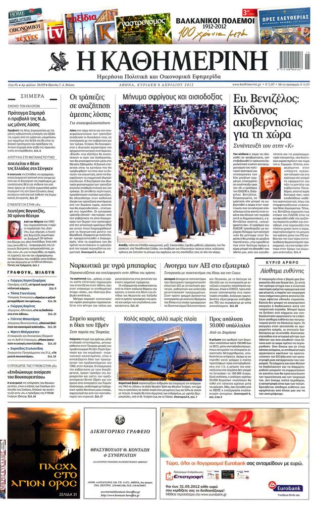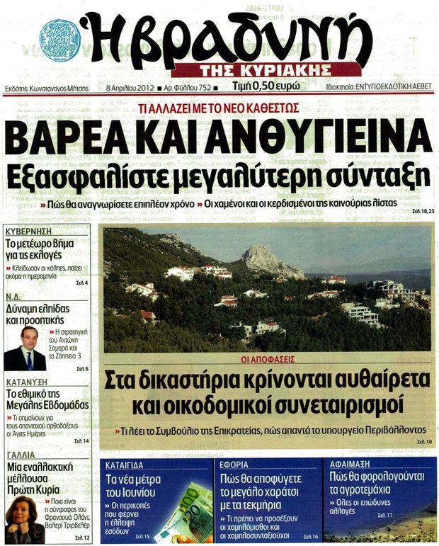 Κυριακάτικα Πρωτοσέλιδα 8-4-2012