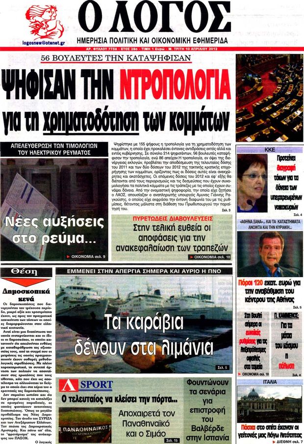 Πολιτικές εφημερίδες 10-4-2012