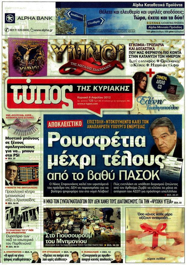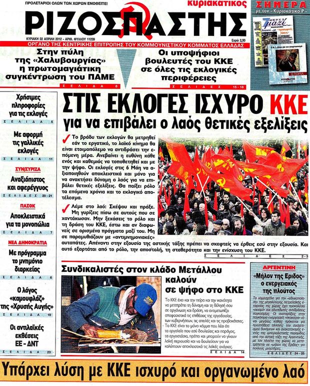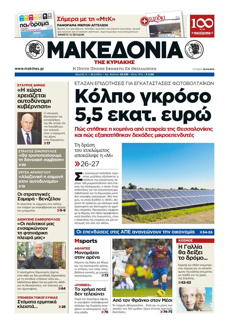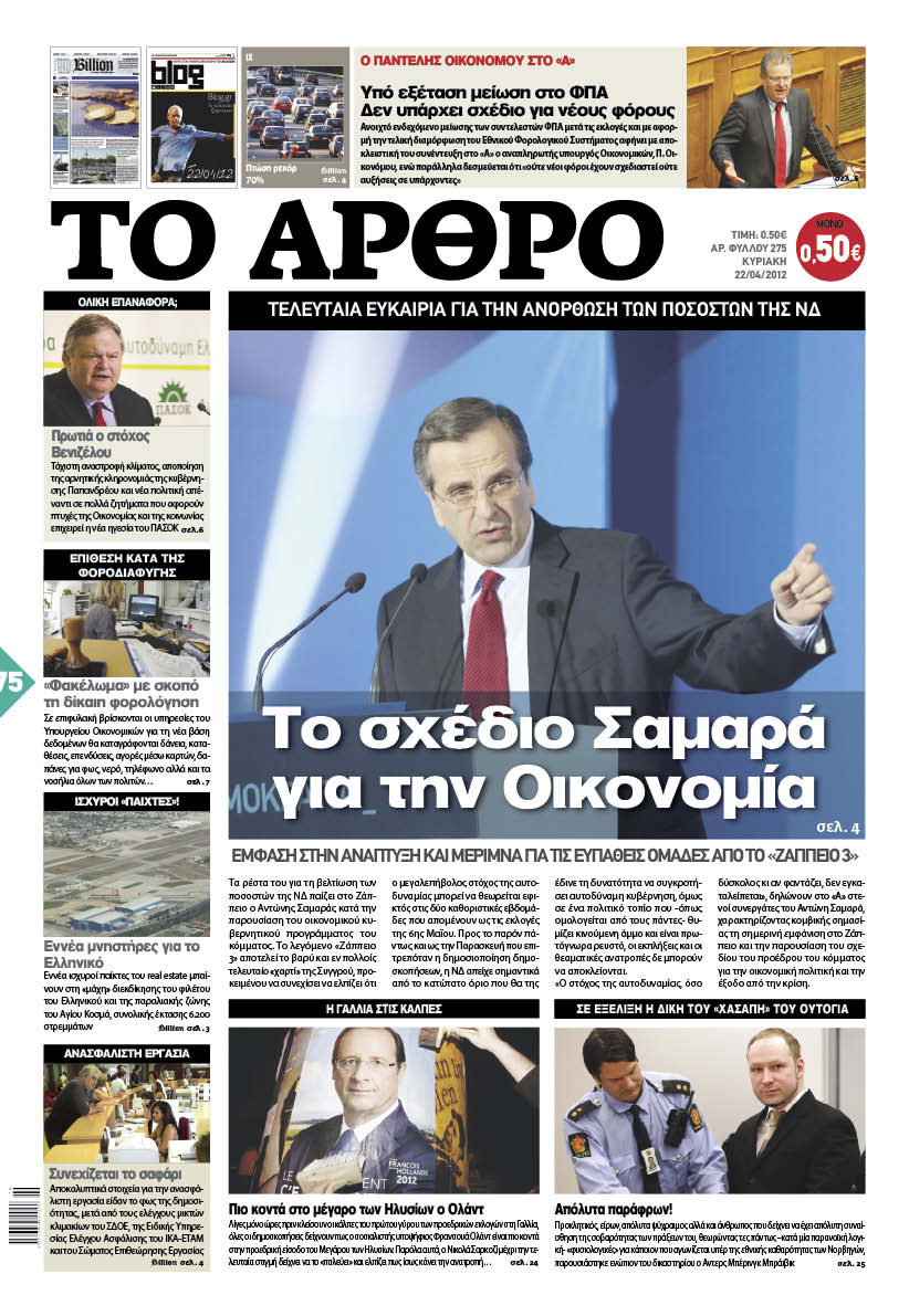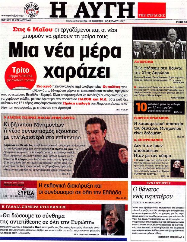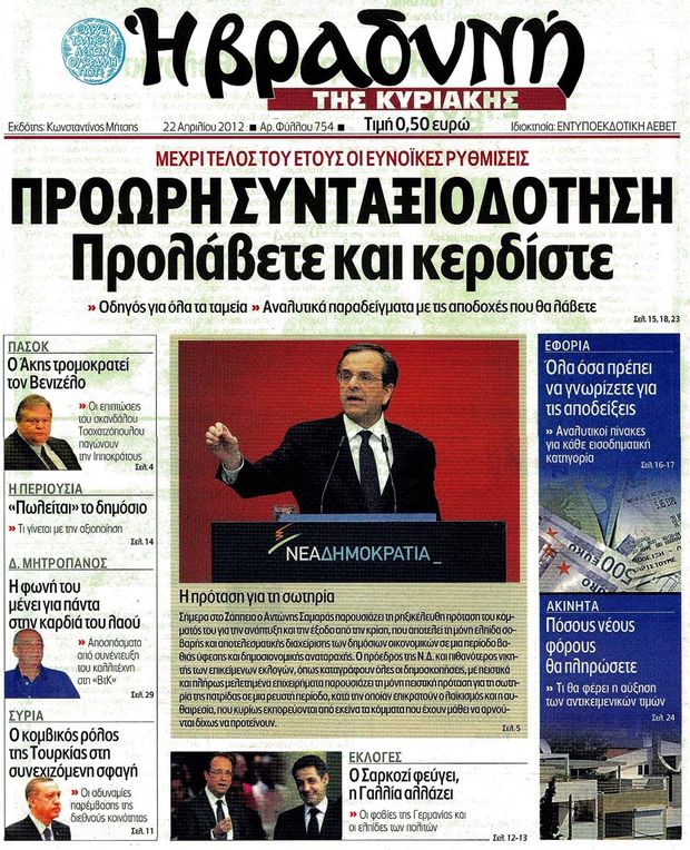 Κυριακάτικα Πρωτοσέλιδα 22-4-2012