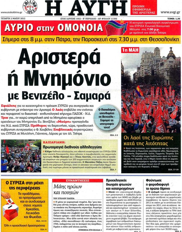 Πολιτικές εφημερίδες 2-5-2012