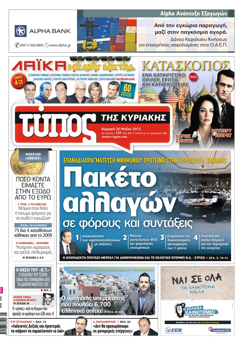 Κυριακάτικα Πρωτοσέλιδα 20-5-2012