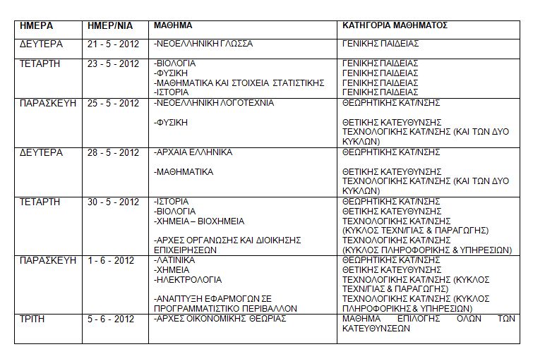 Πρεμιέρα των Πανελλαδικών την Δευτέρα με πρώτο μάθημα την ΝΕΟΕΛΛΗΝΙΚΗ ΓΛΩΣΣΑ για όλες τις κατευύνσεις.