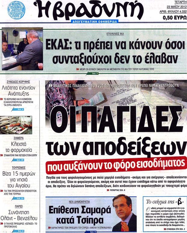 Πολιτικές εφημερίδες 23-5-2012
