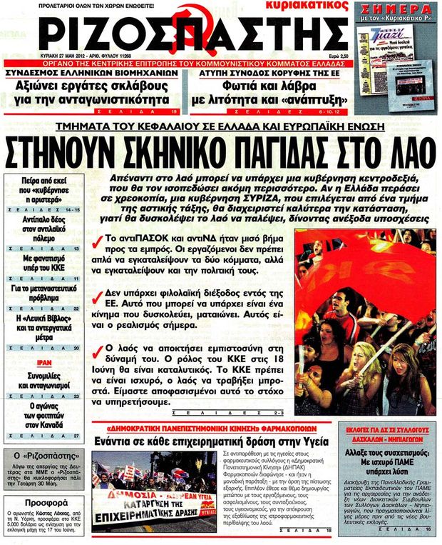 Κυριακάτικα Πρωτοσέλιδα 27-5-2012