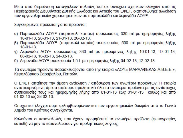 Προληπτική ανάκληση λεμονάδας και πορτοκαλάδας ΛΟΥΞ