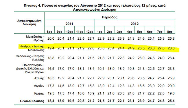 Το ποσοστό ανεργίας τον Αύγουστο του 2012 ανήλθε σε 25,4%, έναντι 18,4% τον