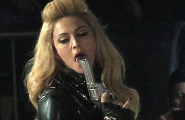 Η 54χρονη σταρ σε συναυλία της στη Νέα Υόρκη εμφανίστηκε με τα οπίσθια έξω, να κάνει άσεμνες χειρονομίες και να γλύφει ένα όπλο ζητώντας παράλληλα από το κοινό παράλληλα να ρίχνει χαρτονομίσματα στη σκηνή.