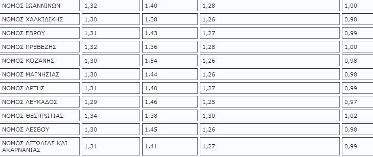 Για να δείτε πόσο μπορείτε να αγοράσετε ανάλογα με τον νομό που κατοικείτε, δείτε τον σχετικό πίνακα: