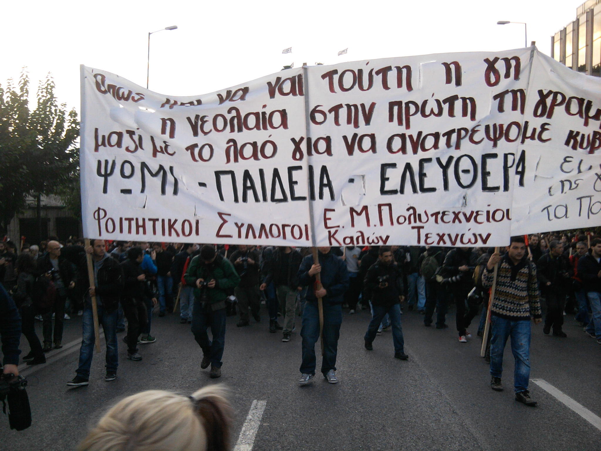 Λίγο μετά τις 15:30 ξεκίνησε η καθιερωμένη πορεία προς την Αμερικανική Πρεσβεία, με τους φοιτητές να κρατούν στα χέρια τους τη σημαία του Πολυτεχνείου.