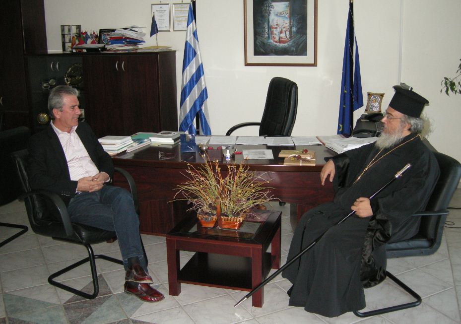 Κατά τη συνάντηση αντάλλαξαν ευχές και αναμνηστικά δώρα. Ο κος Αντιπεριφερειάρχης δήλωσε ότι θα συνεργαστούν για την από κοινού αντιμετώπιση των προβλημάτων σε μια δύσκολη εποχή που οι πολίτες αντιμετωπίζουν πολλές δυσκολίες. Ο ρόλος της Εκκλησίας είναι πολύ σημαντικός, τόσο για το φιλανθρωπικό της έργο, όσο και για το πνευματικό της έργο, που δίνει ελπίδα στους πολίτες.