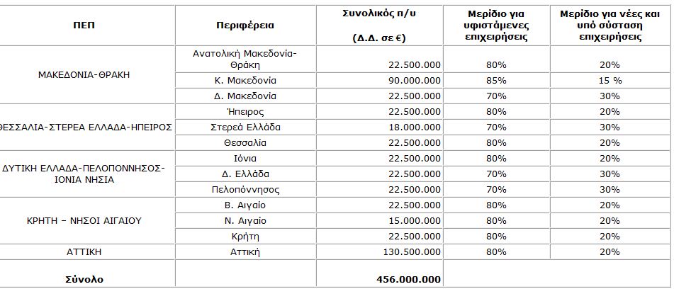 Το 70 – 85 % των κονδυλίων θα αφορά υφιστάμενες επιχειρήσεις και το 15 – 30 % νέες.