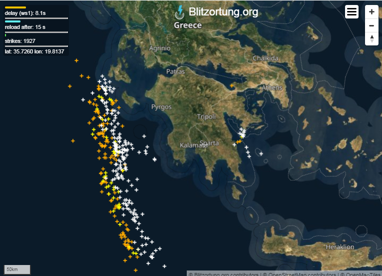 Ο κύριος πυρήνας καταιγίδων πλησιάζει Κεφαλλονιά και Ζάκυνθο