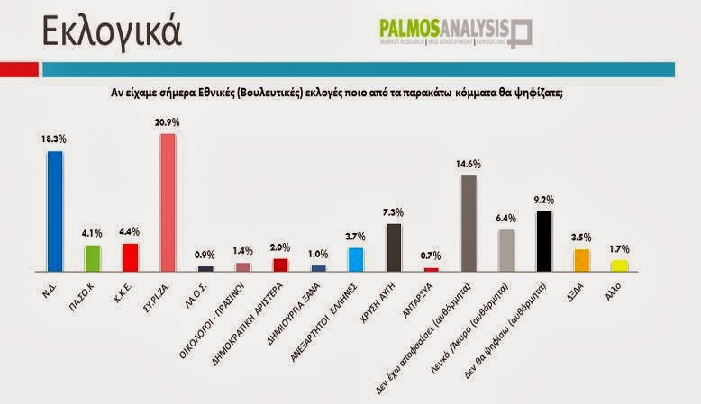 Palmos Analysis Πέντε μονάδες μπροστά ο ΣΥΡΙΖΑ