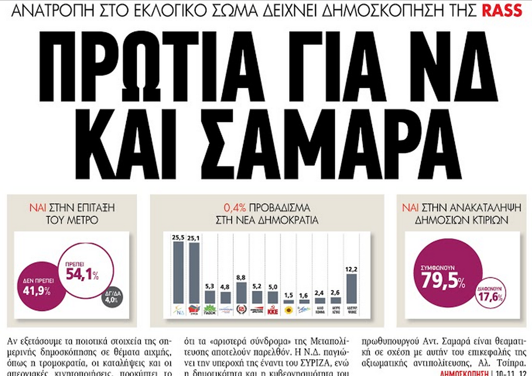 Δημοσκόπηση RASS για Τύπο της Κυριακής.