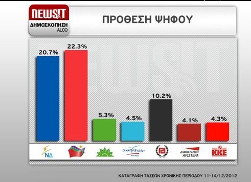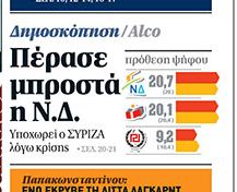 Δημοσκόπηση της Αlco για την εφημερίδα Β«Πρώτο ΘέμαΒ».