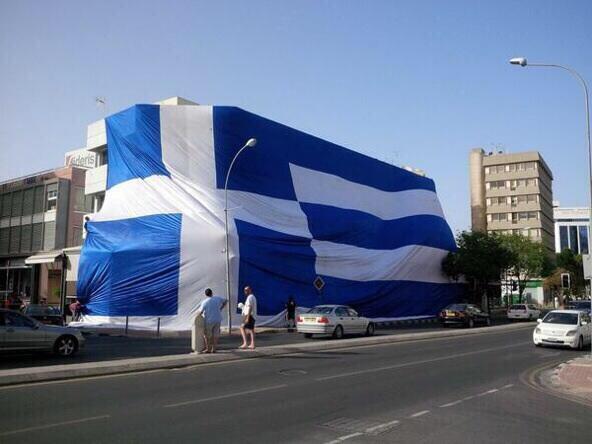 Με μια τεράστια σημαία οι αδελφοί Κύπριοι στηρίζουν την εθνική
