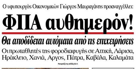 ΦΠΑ αυθημερόν προαναγγέλλει η κυβέρνηση
