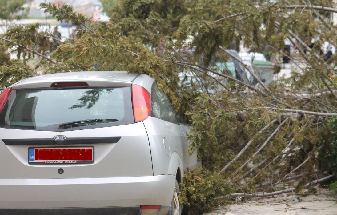[Photo] Πρεβεζα:Πτώση δένδρου σε αυτοκίνητο