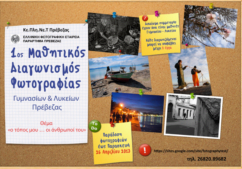 1ος Μαθητικός Διαγωνισμός Φωτογραφίας στην Γυμνασίων & Λυκείων της Πρέβεζας