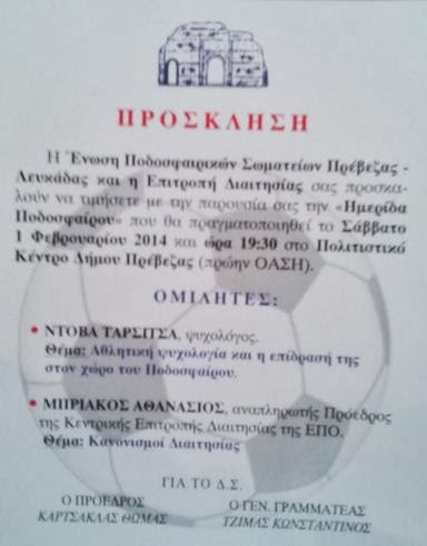 Ημερίδα από την Ένωση Ποδοσφαιρικών Σωματείων Πρέβεζας-Λευκάδας