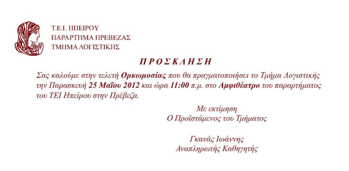 Ορκωμοσία θα πραγματοποιήσει την Παρασκευή το τμήμα λογιστικής Πρέβεζας