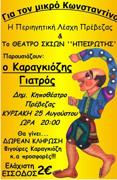 Πρέβεζα: Παράσταση Καραγκιόζη για τον μικρό Κωνσταντίνο